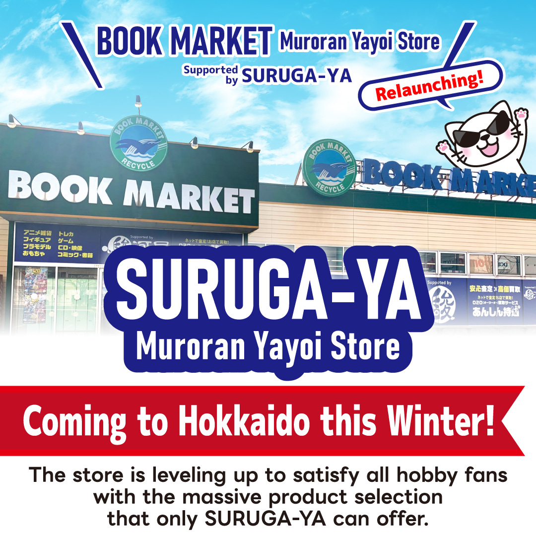 "BOOK MARKET Muroran Yayoi Store Supported by SURUGA-YA" is finally rebranding and reopening as "SURUGA-YA M...