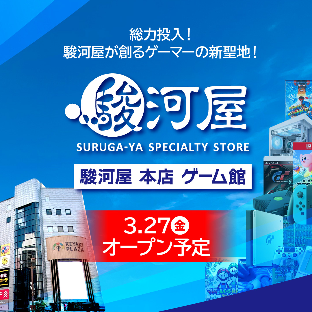 3/27(金)「駿河屋 本店 ゲーム館」が、静岡県静岡市中心街にある「駿河屋 本店 駿河屋ビル」隣のけやきプラザ4階に誕生します!