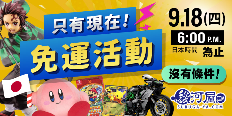 致全世界的動漫・周邊收藏家們! 駿河屋.COM將舉辦適用於所有商品的「集中購買大型促銷」! 以驚人的超值價格入手日本的所有動畫、漫畫、模型、遊戲等商品的大好機會! 限時促銷!駿河屋.COM的所有商品都適用! 買越多省越多! 本次促銷適用於駿河屋.COM經營的所有商品。 品項包含最新動漫、稀有模型、經典遊戲、限定同人周邊商品等,是擴充收藏品的大好機會! 活動期間 9/...