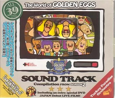 [1] (1) We Are The Golden Egs (Listen More! Ver.) (2) Necessary (3) Real Beat Box #02 (4) It's not a bra! (5) Don't Kiss Me In The Dark (6) Bekwa (7) A Piece Of Mind In Blue (8) Ba Bunba Bunba in D? Fever Island (medley) (9) Let's go to the ball. (10) I'm O. K., And You? (10) I'm O. K., And You? (Jessica's feeling is nothing) (10) I'm O. K., And You? (Jessica's feeling is nothing) (11) Barlow (12) Turkey Ranger No Uta (Mobilization! Turkey Ranger) (13) Bar Rorin! Action! (18) Zombie Island (19) Andora (20) Mother-in-law Humming (21) Round-about Waltz (22) Mohe? (23) Dig, Dig, Dig & Dig It! (24) Fiddler's Chat (25) Max drawing song (26) Tengu drawing song (27) Running Commentary (28) Master Mind (29) Fusion of new folk music (30) THBC composition "Field trip" humming (31) Theme For The History Of Turkey's Hill (34) Improvisation 001 (35) Improvisation 002 (36) Turkey Cock'n Roll (Alterneve Mix) (37) Fiddler's Chat (Whip It Good! Re-mix) (38) Wanna Be The Golden Egs Party 」 Live Stage Footage
