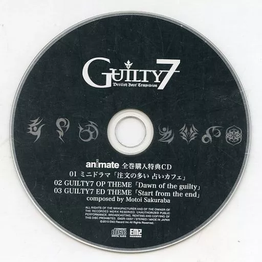 The entire Animate volume of the drama CDs "Guilty7" Vol. 1 ~ 7 is a single item of the Purchase benefits mini-drama CDs.