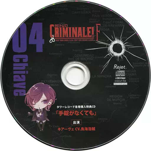 The Tower Record special drama CD of "Kare to 48 hour incubation CD" クリミナーレ! F "Vol. 4 キアーヴェ (CV : Kosuke Toriumi)" is a single item.