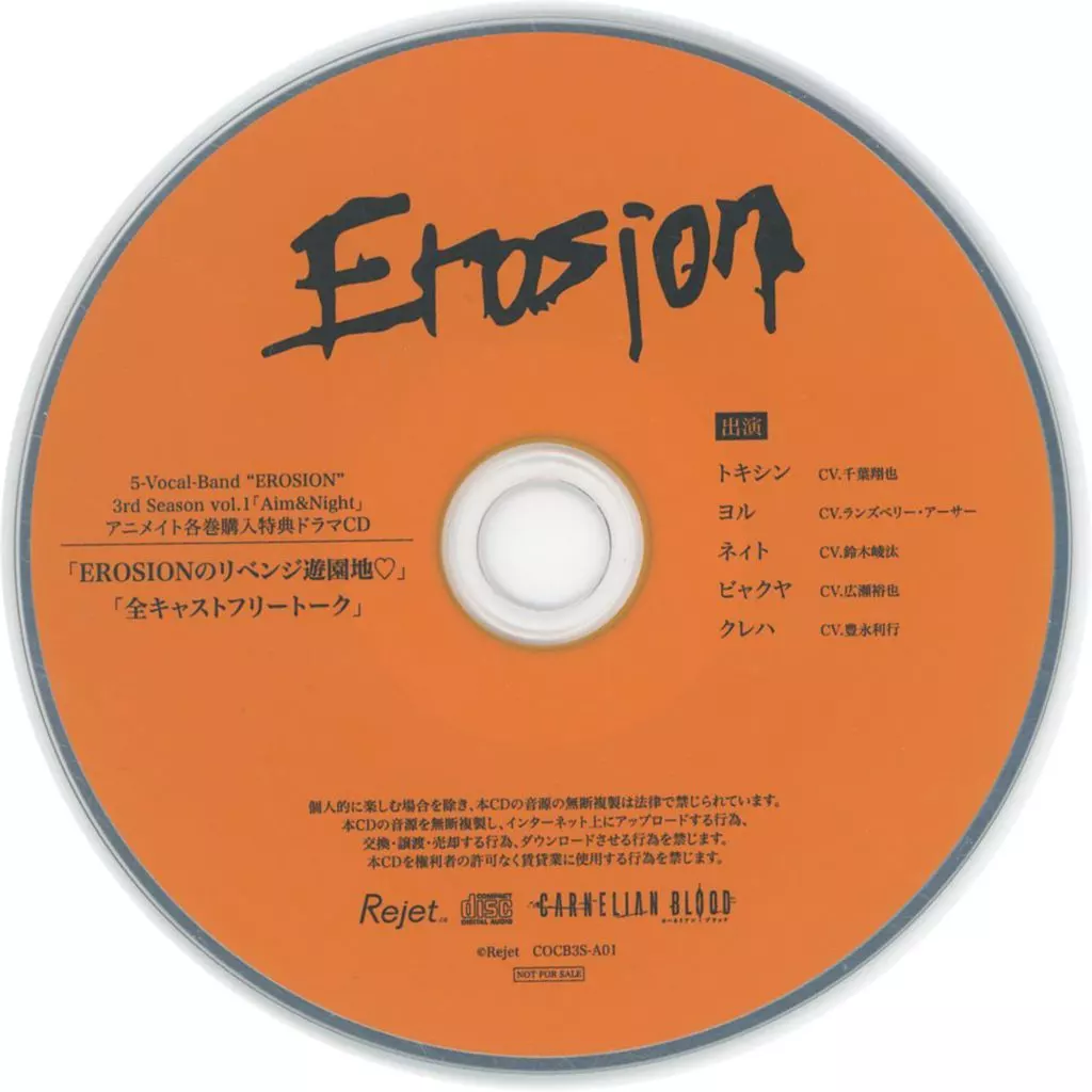 CD「「CARNELIAN BLOOD」 EROSION / 5-Vocal-Band ”EROSION” 3rd Season vol.1「Aim&Night」」のアニメイト各巻購入特典ドラマCD単品になります。