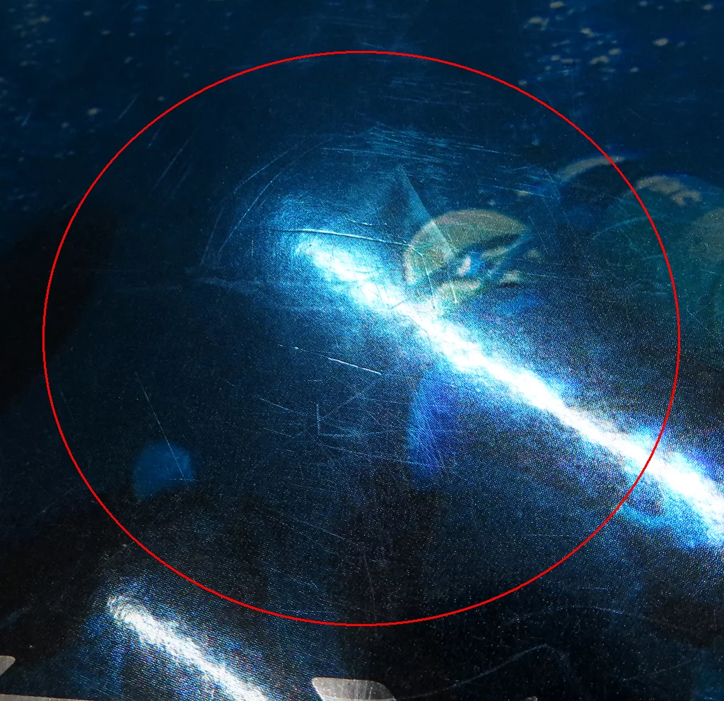 This item has scratches and stains on the box, blue clear case for T-shirts, and DISC case.