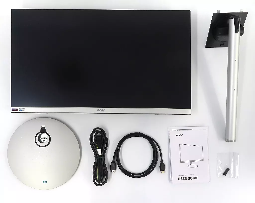 Included items : Main body, HDMI cable, power cable, stand neck, stand base
