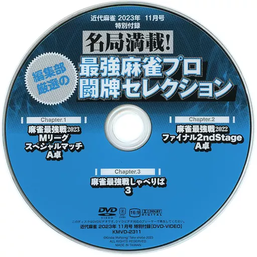 Japanese title: その他DVD 名局満載! 編集部厳選の最強麻雀プロ闘牌セレクション (近代麻雀 2023年11月号 特別付録)