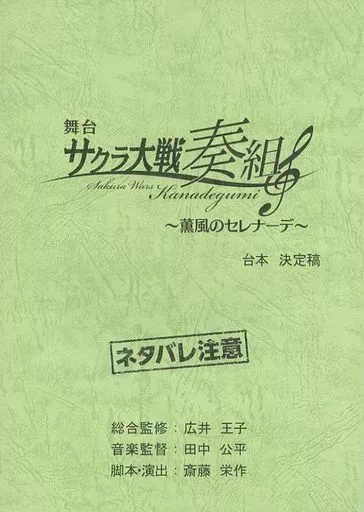 This item is a single script for the stage "SAKURA WARS Sogumi : Kunkaze no Serenade" which was held from September 19 to 23, 2013.