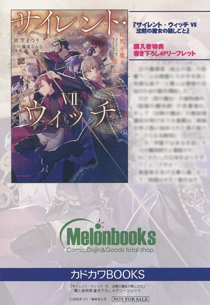This item is Melon Books Purchase benefits of Light Novel "Silent Witch Silent Witch's Secret (7)".