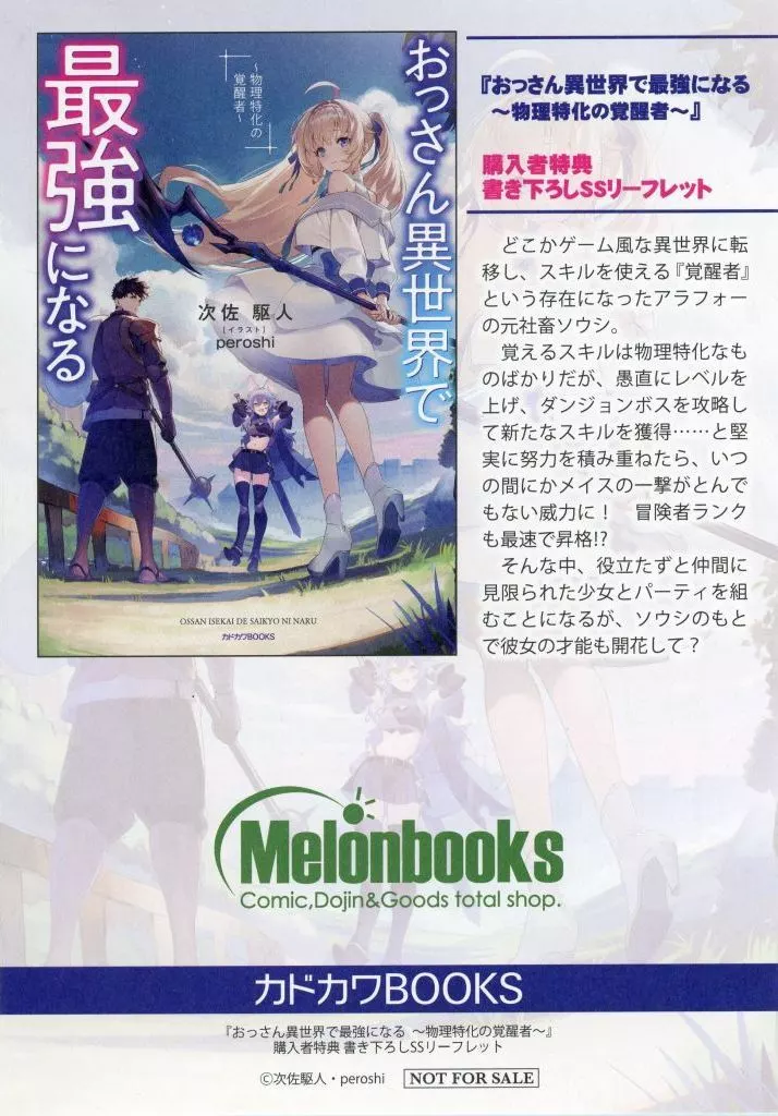 This item is Melon Books Purchase benefits of Light Novel "Ossan becomes the strongest in the different world ~ physical speciality awakening ~ (1)".