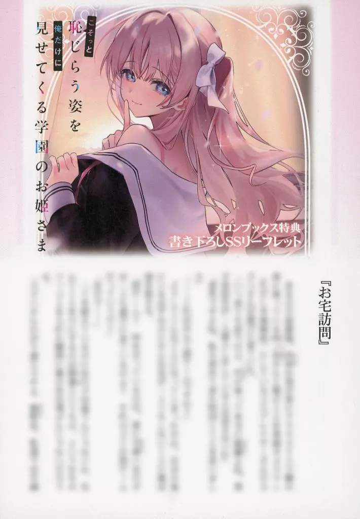 This item is a Melon Books Purchase benefits of Light Novel "The Princess of School (1) who shows only me a shameful figure".
