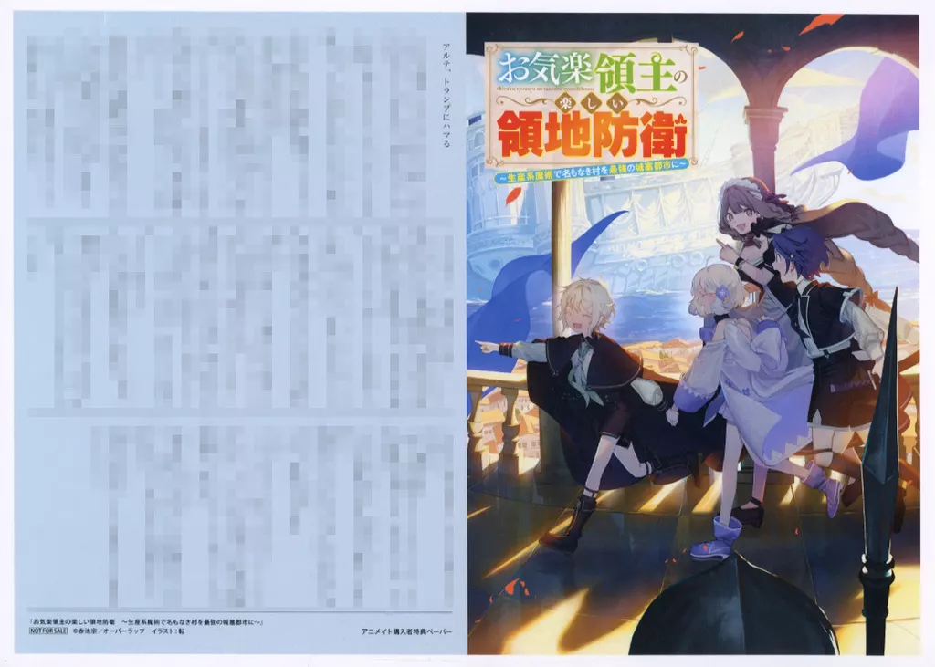 1枚仕様こちらの商品は、ライトノベル「お気楽領主の楽しい領地防衛 ~生産系魔術で名もなき村を最強の城塞都市に~(8)」のアニメイト購入特典になります