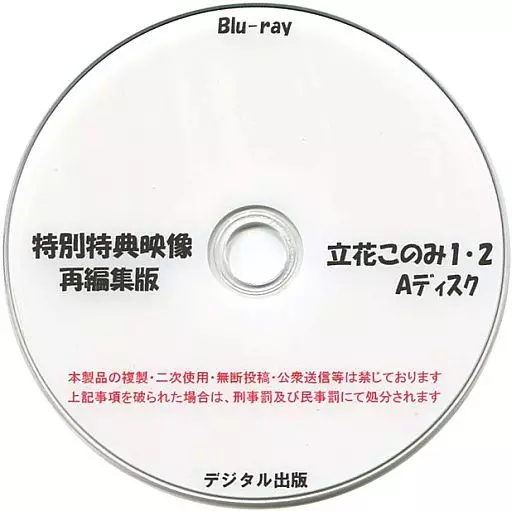 Japanese title: 同人動画 Blu-rayソフト 特別特典映像再編集版 立花このみ 1・2 Aディスク / デジタル出版