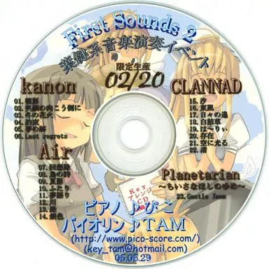 Japanese title: 同人音楽CDソフト First Sounds 2 葉鍵系音楽演奏イベント ピアノ♪ぴこ バイオリン♪TAM / ぴこのスコア/TAMUSIC