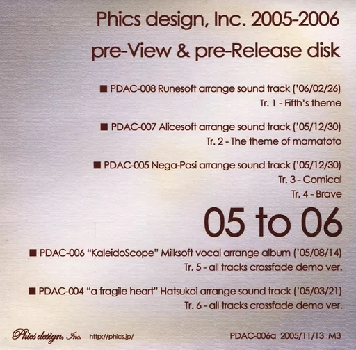 Dojin music CD-software pre-View & pre-Release disk / Phics design. Inc.