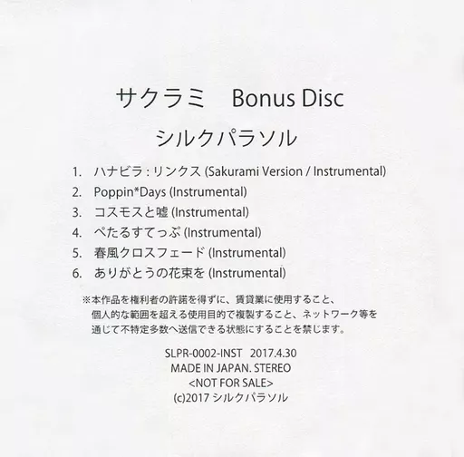 1. Hanabira : Lynx (Sakurami Version/Instrumental)