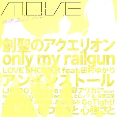 (1) LIBIDO (m. o. v. e × Arika Takarano (from Ali Project)) (2) AQUARION (3) LOVE SHOWER (feat. Yukari Tamura) (4) The Flower of Diamonds (5) Love, Serenity and Strength and (6) Monster Explosion (feat. Hironobu Kageyama & Masaaki Endoh) (7) Nameless Love (m. o. v. e × Haruko Momoi × Shin-ichiro Miki) (8) Gravity (9) Uninstall (10) One Way Train (feat. Takeshi Washizaki & Masumi Asano) (11) Go Tight! (12) Only My Railgun (13) REAL LOVE ~ Setting fire to the soul ~ (feat. Faylan) (14) JUPITER ∞ (feat. Minami Takayama) (15) Gentle Wounds (m. o. v. e×AKINO (from bless4)