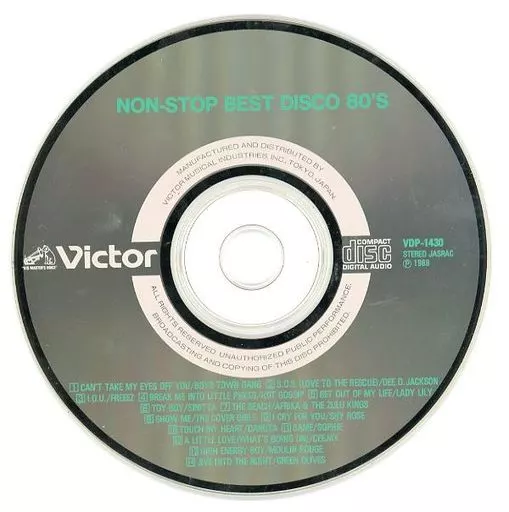 (1) I'm in love with your eyes (Can't Take My Eyes Off You) (Boys Town Gang) (2) S. O. S (Dee D. Jackson) (3) I. O. U. (Freeze) (4) Break Me (Hot Gossip) (5) Heart Does Not Return (Lady Lily) (6) TOY BOY (Sinitta) (7) The Beach (Africa & the Zulu Kings) (8) Show Me (Cover Girls) (9) Cry for You (Shy Rose) (10) Touch My Heart (Da Nuta) (11) Seim (Sophie) (12) Little Love (CJ) (13) High Energy Boy (MULAN Rouge) (14) Jaib Into the Night (Green Olives)