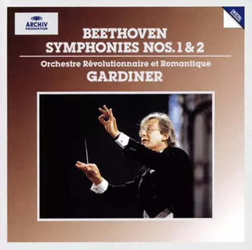 Contains Beethoven's Symphony No. 1 and No. 2, directed by Gardiner. Excerpts from the famous edition that won the 1994 Record Academy Grand Prize. Early symphonies are featured and Beethoven's musical talent stands out.