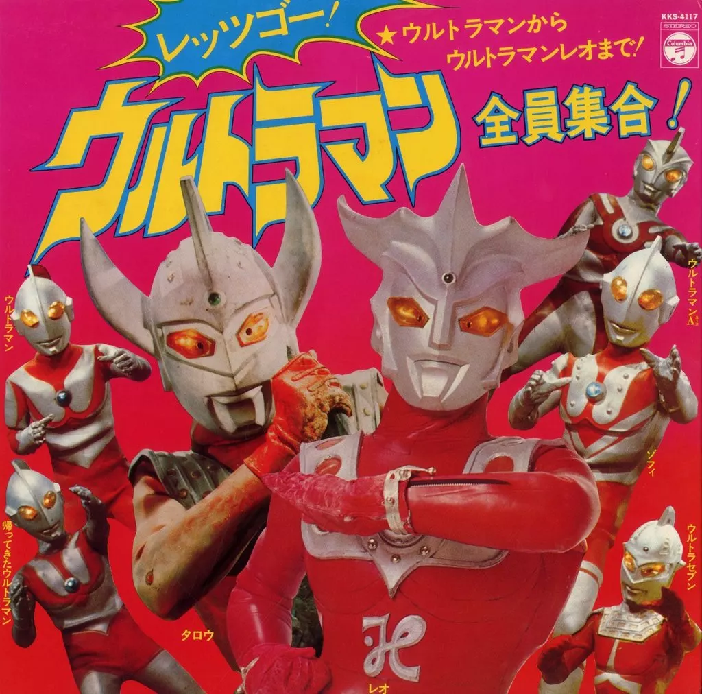 Japanese title: 特撮LPレコード ウルトラマンからウルトラマンレオまで!レッツゴー!ウルトラマン全員集合![帯付]