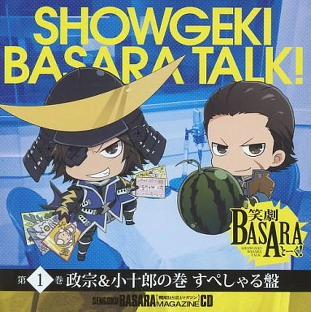 「戦国BASARAマガジン Vol.1 2013春」 (アスキー・メディアワークス刊) の付録CDに収録され、声優・中井和哉さん (伊達政宗役) と森川智之さん (片岡小十郎役) による抱腹絶倒おもしろトークが大好評だったDJCDコーナー「笑劇BASARAとーく! 」 (約40分) 。この注目のコーナーが、Vol.1とVol.2 (2013年8月27日発売予定) の名場面的トーク&ミニドラマに、新たな録り下ろしトーク&ミニドラマを40分以上も加えた、ファン待望のDJCDとなって登場します。