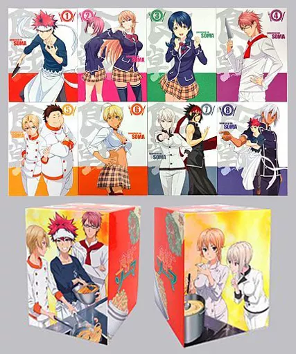 This item comes with a storage box (創真 & Takumi & Shinomiya, Erina & Alice) with Purchase benefits anime illustrations for all volumes of Animate.
