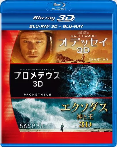> Box 3D movie by hit maker Ridley Scott. Includes "Odyssey," a science-fiction survival role played by Matt Damon, a man left behind by Mars, and "Prometheus" and "Exodus: God and the King".