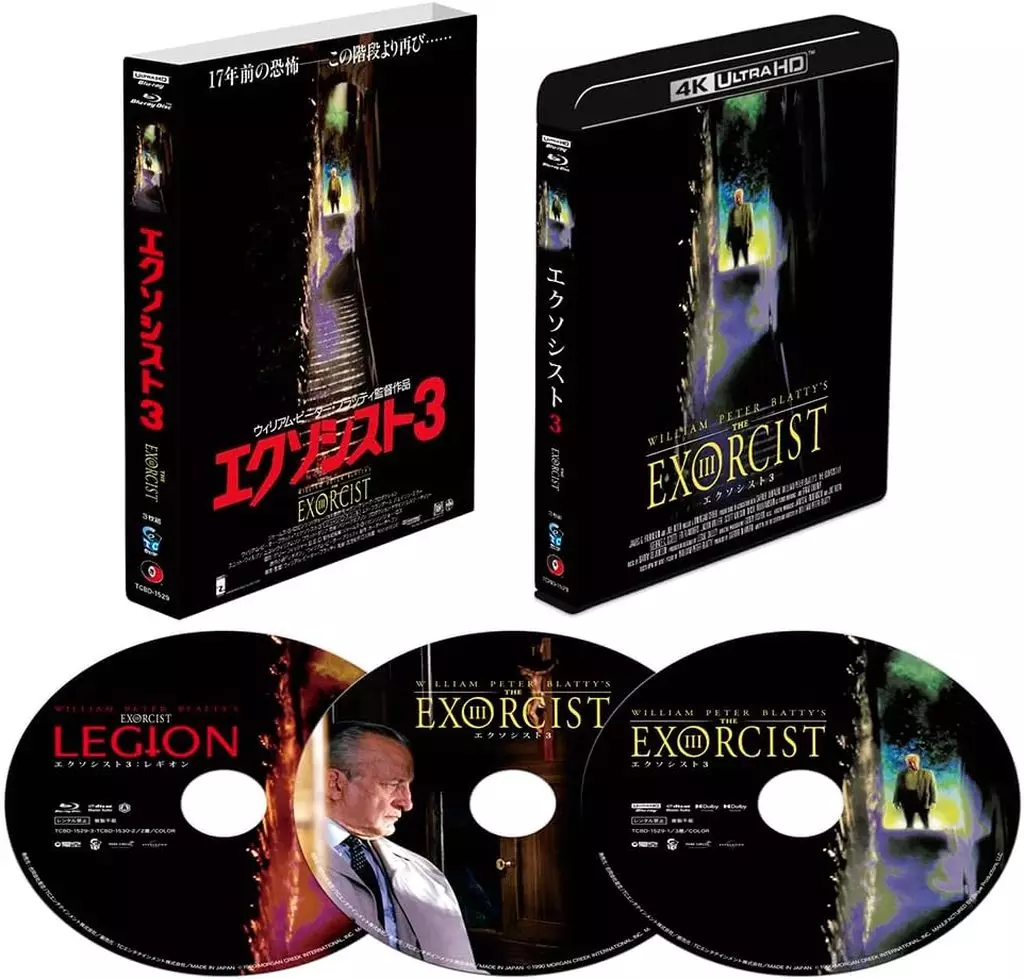 [2]削除シーン,別カット,音声不良素材集/削除されたプロローグ/インタビュー集/インタビュー&メイキングEPK/オリジナル劇場予告編集/日本版劇場予告編集/米国TVスポット集/ラジオスポット集/舞台裏フォトギャラリー[動画]/ポスター&ロビーカード・フォトギャラリー[動画]/スチル・ギャラリー[動画]/[3]脚本,監督ウィリアム・ピーター・ブラッティへの音声インタビュー(「レギオン」本編映像と同時再生)/『死よ,誇る勿れ:メイキング・オブ・エクソシスト3』