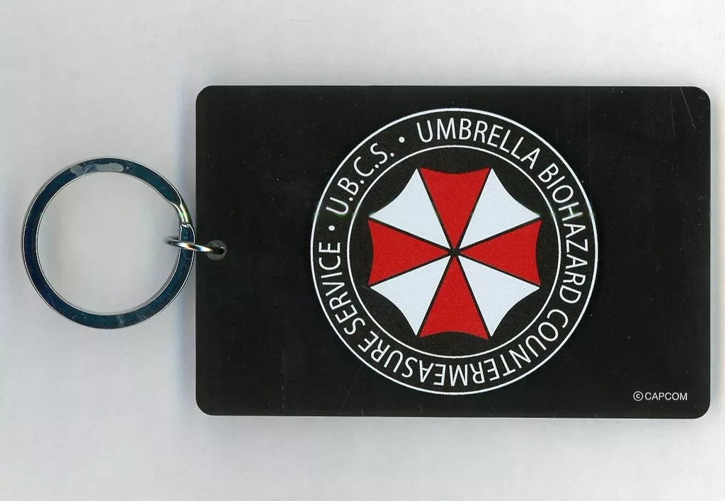 This is a "trading card-style acrylic key holder" from "Capcom Cafe x BIOHAZARD(RESIDENT EVIL) RE : 3".