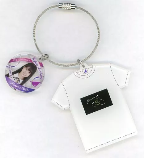 This is a key holder with 2 types of acrylic charms, "Birthday T-shirt charm" and "Circle Charm with Member's Portrait".