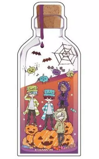 It is a standing item that expresses the world view of Mr. Character in a three dimensional palm-sized bottle. The back side is plain (white).