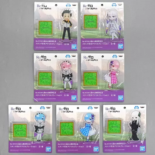 Product Description ■ "Acrylic Plate vol. 1 with Re:ZeRo Starting Life in Another World Stand" 7 types set.