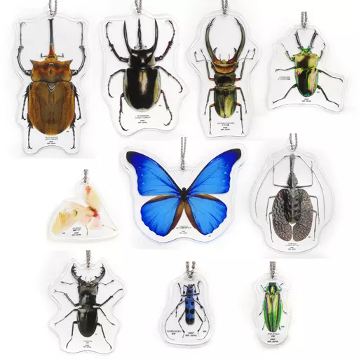Acrylic key holder for rare insects of the world. It is almost the same size as real insects.
