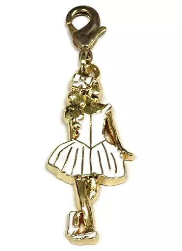 A metal charm in the shape of five characters.