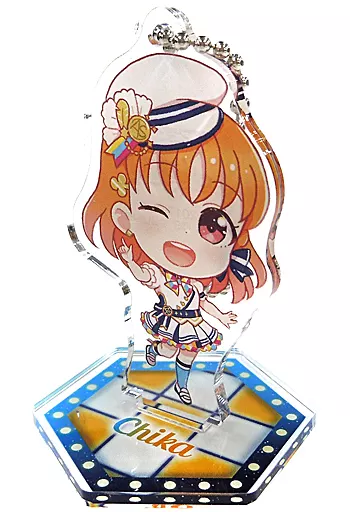 Chika TAKAUMI "Sega Collaboration Cafe Love Live! Sukfese Series 2021 Deformed Acrylic Key Holder with Stand (Aqours Thanksgiving 2020 ~ ONLINE ~ Deformed)"