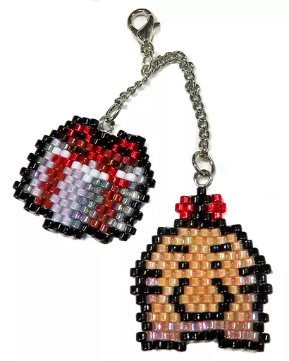This is a cute and glittering charm designed by Mr. Imagawa and created by Miyuki craftsmen by picking up beads one by one with a needle.