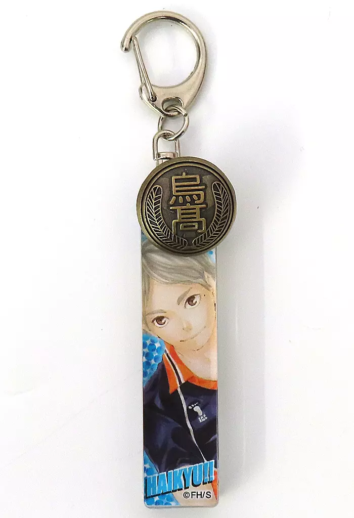 This is "Acrylic Key Holder with School Emblem Button" from "Haikyu!!!".