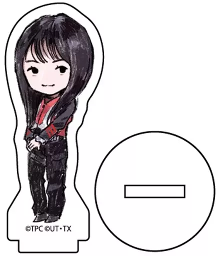 This is an acrylic stand type item processed by die cutting.