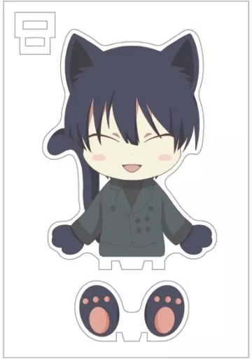 [Sit Down Mascot] is a new type of acrylic stand which consists of 3 parts, a body, legs and a base, and looks three dimensional when assembled.
