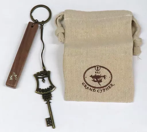 Size : Key Part / approx. H80mm x W28mm x 3 mm thick, Wooden Part / approx. H95 x W15mm x 10 mm thick, drawstring bag / approx. H135mm x W95mm x 5 mm thick