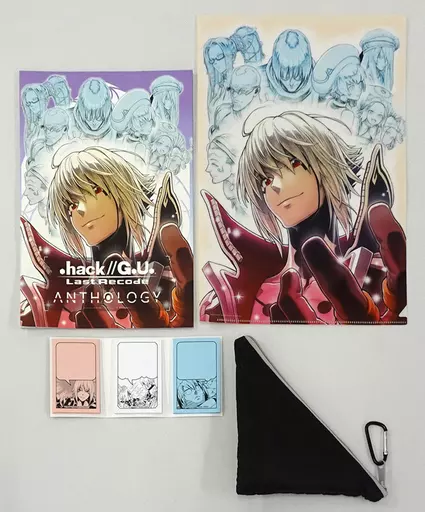 The content of the set is 『. hack//G. U. Last Recode 』 anthology booklet, plastic trasparent file folder with illustrations drawn for the cover of the anthology, ハセヲ & Auvan's unique balloon label, and Kalabina for convenient carrying!