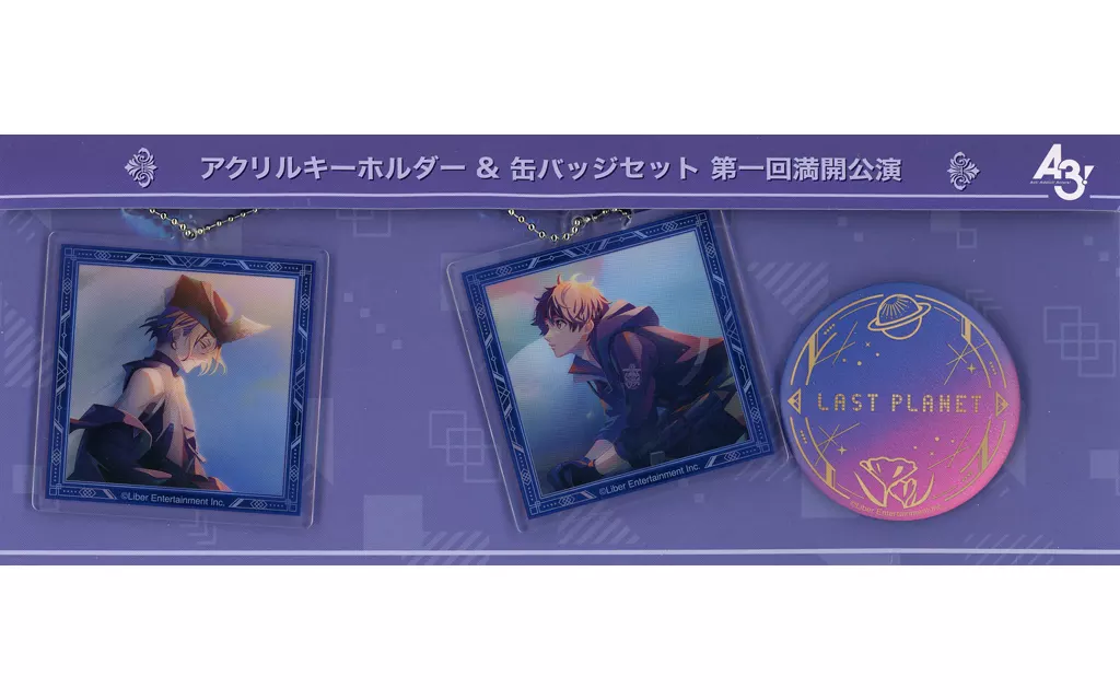 From "A3! A3! (Athree)", acrylic key holder of 2 main characters of the full performance and metal badge with the performance name motif design are now available as a set!