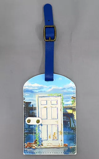 It is a "luggage tag" of "Suzume no Door-lock Exhibition".