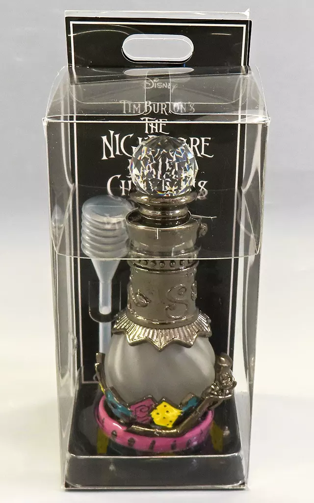 Spray type atomizer with a ball decorated on the top of the bottle cap shining brightly when it receives light. The bottle is designed with a Tsugihagi pattern of Sally's clothes. Please refill it with your own perfume.
