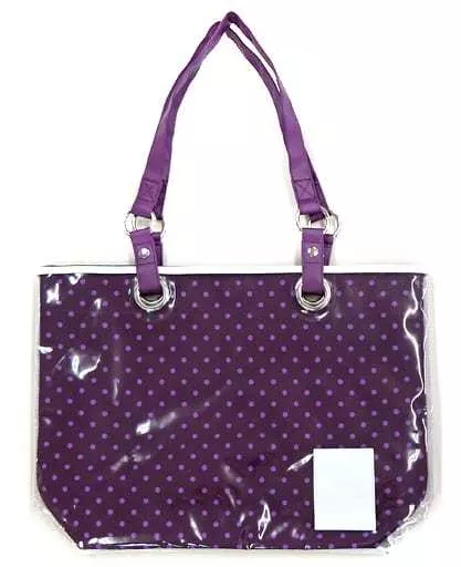 The clear bag features a synthetic leather embossed one point and a fabric bag with a colorful polka-dot pattern.