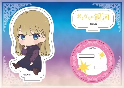 This acrylic stand uses a cute illustration of the drawing paper and sitting down.