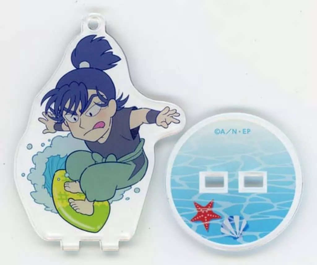 This is "Trading Acrylic Stand Key Holder Umi No Ie Ver. 1" from "Nintama Rantaro x Animate Cafe Hyogo Suigun Umi No Ie".