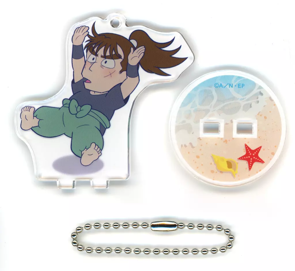 This is "Trading Acrylic Stand Key Holder Umi No Ie Ver. 1" from "Nintama Rantaro x Animate Cafe Hyogo Suigun Umi No Ie".