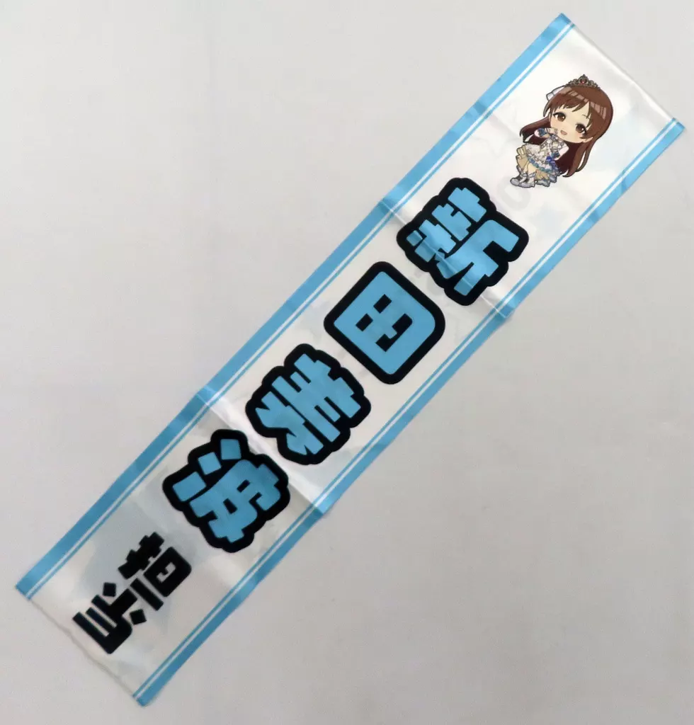 This is a tasuki decorated with the SD illustration drawn for the event and the name of idol.