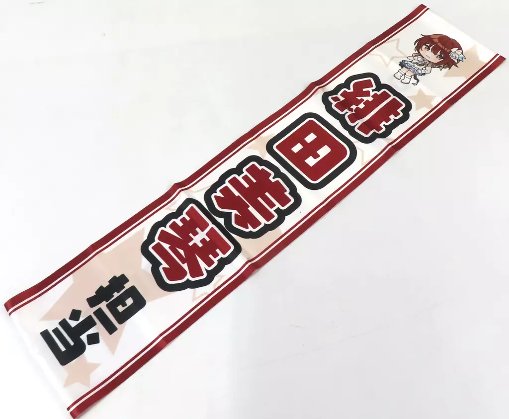 This is a tasuki decorated with the SD illustration drawn for the event and the name of idol.