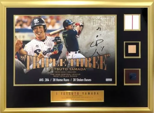 In addition, pieces of Yamada's home uniform, bat and spike are also included in the photo panel.